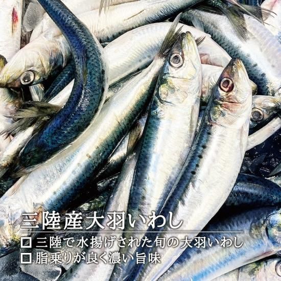 世界有数の豊かな漁場として知られる三陸沖で水揚げされたいわしを使用しています。いわしの中でも大ぶりで鮮度のいい旬の大羽いわしを厳選し、三陸地域にある工場で加工しています。旬の大羽いわしは脂乗りが良く、旨味のあるイワシ本来の味わいが楽しめます。
