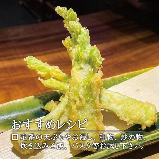 4)タラの芽を下処理し、天ぷらやごま和え、パスタなど、お好きな調理方法でお楽しみください。