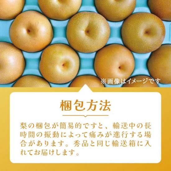 梨の梱包が簡易的ですと、輸送中の長時間の振動によって痛みが進行する場合があります。本商品では、ご家庭用でも秀品と同じ輸送箱に入れてお届けします。